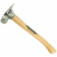 Lightweight 10 oz. titanium head with smooth face hits like a 16 oz. steel hammer, but with 45% less weight and 10 times less recoil shock. Less weight and less recoil helps to reduce carpal tunnel syndrome and tennis elbow which translates into less pain, less down time, and more productivity. The 13.5'' curved axe style American hickory handle offers extreme durability and great comfort. Tight radius straight claw design gives improved nail pulling performance without leaving marks. Features magnetic nail starter on nose of hammer for easy 1 handed nail starts in overhead work. Dimensions: 14.5'' x 6'' x 1.2''. Weight: 1.5 lb.